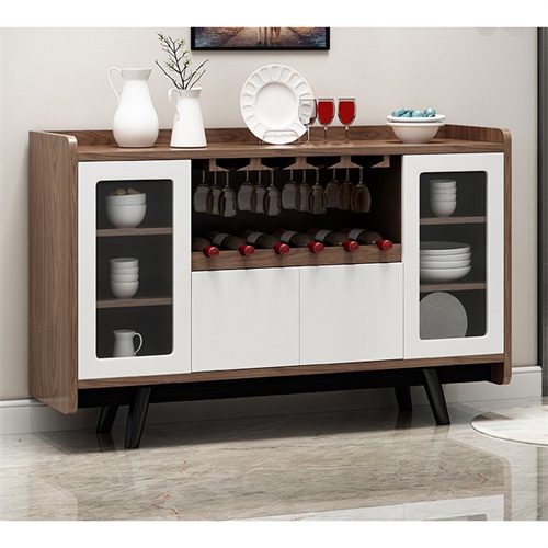3、備餐柜左右兩邊及上部抽屜和柜門(mén)結(jié)合的封閉式空間搭配中間可上下調(diào)節(jié)的酒格設(shè)計(jì)別出心裁,增大儲(chǔ)物空間的同時(shí)更方便您陳列各式美酒;四個(gè)支撐腳設(shè)計(jì),使備餐柜結(jié)構(gòu)更加穩(wěn)固。
