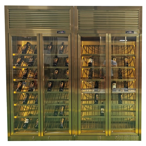 鈦金輕奢金屬不銹鋼恒溫酒柜_定制不銹鋼酒窖廠家直銷圖