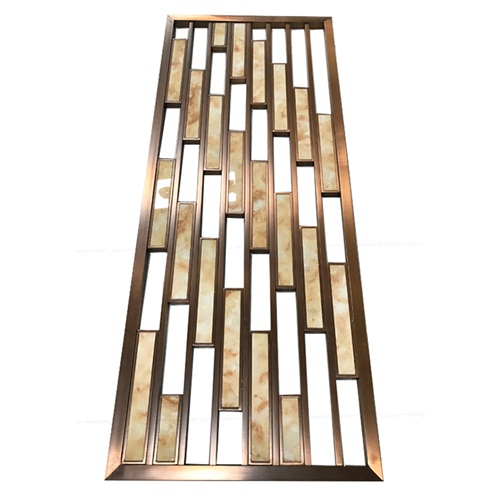 會所新中式玫瑰金鏤空花格屏風造型中式花格造型居多,它主要由不銹鋼空心管經(jīng)氬弧焊接,打磨,拉絲,拋光和電鍍制成。線條簡單,但表達了深遠的意境,簡單的格子被用來傳達優(yōu)雅的魅力。沉淀數(shù)千年歷史的東方生活美學在當今時代并沒有逐漸消失。然而,憑借其簡單而輕巧的設(shè)計而又不失去其內(nèi)涵,它在歷史的腳步中站穩(wěn)了腳跟。到目前為止,新型的中國不銹鋼格子屏風仍然散發(fā)出永不落伍的魅力。新型中式不銹鋼屏風是用不銹鋼原料制成的。薄鍍層工藝不會掩蓋原始的不銹鋼金屬感,隱隱約約的金屬光澤以及現(xiàn)代有機板,它是現(xiàn)代科學技術(shù)進步和新型建筑材料的重要體現(xiàn)。