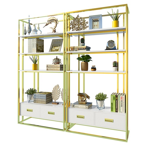 北歐香檳金不銹鋼金屬書架簡(jiǎn)約_不銹鋼書架款式定制圖