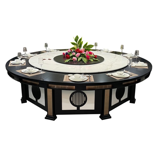 新款高級會所新中式自動旋轉(zhuǎn)電動餐桌圖