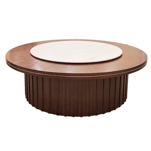 ,最大的特點是在圍板上采用圓弧形設(shè)計,別具一格,轉(zhuǎn)盤面為大理石制作,整體框架使用了進口橡膠木制作,木材經(jīng)過3到烘干工藝,含水率控制在8%-10%,確保多年使用以后不開裂,無裂紋,并且內(nèi)置盤式機芯,經(jīng)久耐用無任何噪音,讓電動餐桌功能更加豐富,就餐者有更好的就餐體驗。