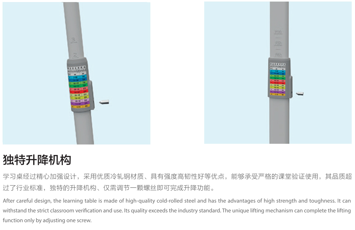 4.桌子及椅子管壁:1.5mm壁厚圓形管、可升降;