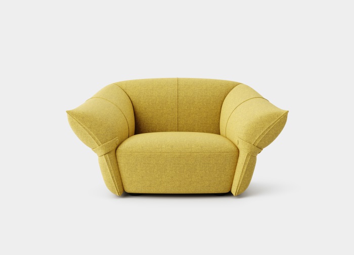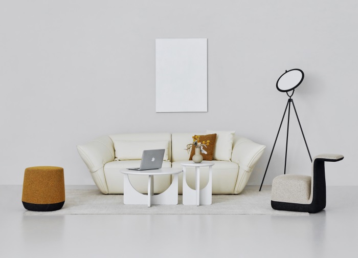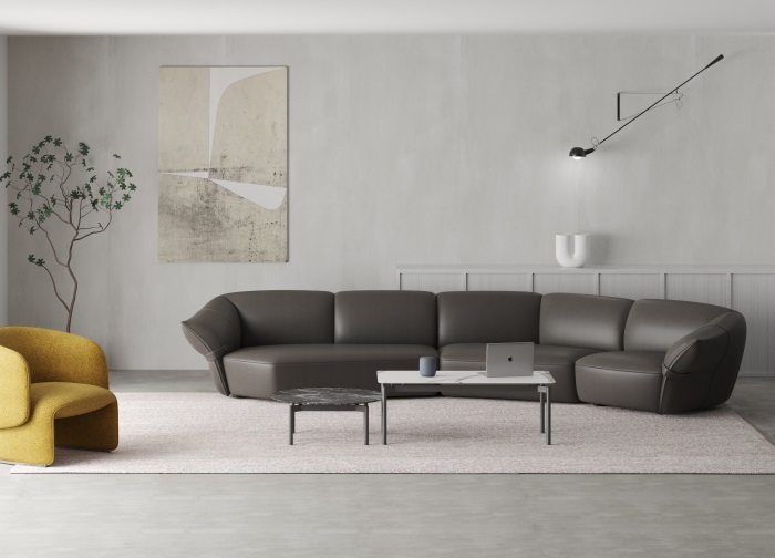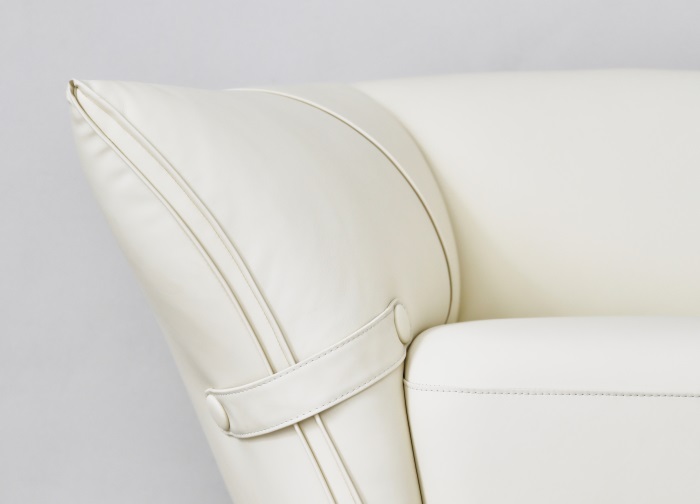 花朵盛開時,花瓣和花蕊會展開,設(shè)計師從花朵的外觀形象中提煉出花瓣盛開時的姿態(tài),并應(yīng)用到沙發(fā)的設(shè)計中。沙發(fā)的扶手采用了往外張開的形狀,類似于花朵的花瓣展開的姿態(tài),同時扶手上還有滾邊點(diǎn)綴,使得整個沙發(fā)看起來更加生動有靈性。此外,沙發(fā)的扶手還可以作為靠背傾靠,滿足人們側(cè)坐時的需求。兩側(cè)拉扣的設(shè)計將外張的扶手往回收攏,猶如花瓣被花托收攏的形態(tài),使得產(chǎn)品設(shè)計更加完整,有生命力。