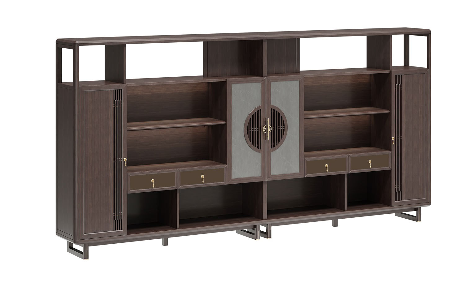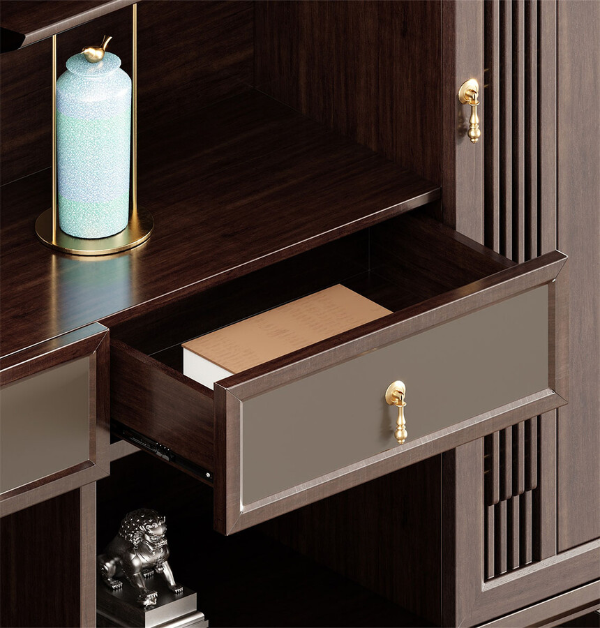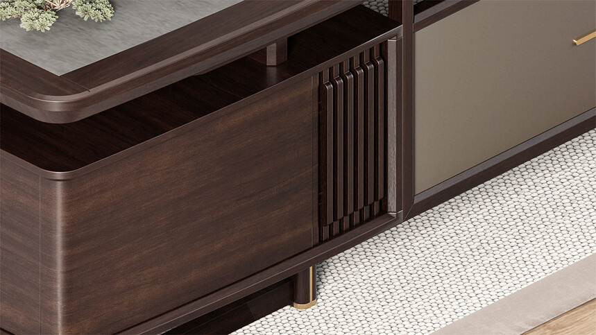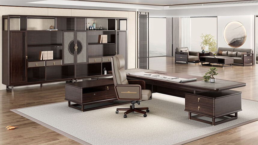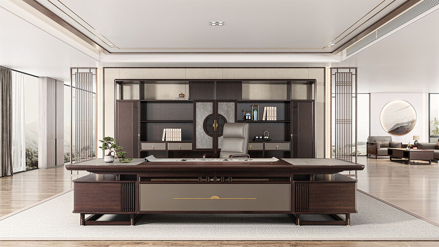 鴻泰系列是一款新中式風(fēng)格的辦公家具,設(shè)計(jì)靈感源于中式傳統(tǒng)裝飾紋樣“回”字形,因其形式回環(huán)反復(fù),延綿不斷,在民間有“富貴不斷頭”的說法,有連綿不斷、吉利長久的吉祥寓意,在造型上主要采用硬朗簡潔的直線條,溫潤的烏金木與質(zhì)樸的巖板相結(jié)合,剛?cè)岵?jì),時(shí)尚大方,既使得中式家具古典、質(zhì)樸的內(nèi)涵顯現(xiàn),又符合現(xiàn)代辦公追求的時(shí)尚感、實(shí)用性。