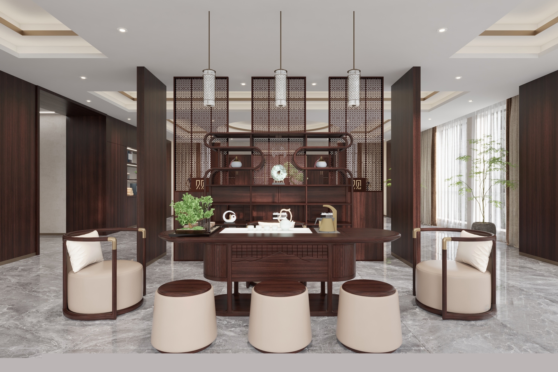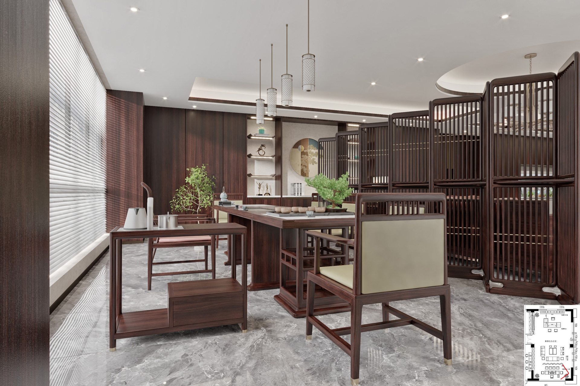禪意極簡中式辦公案例