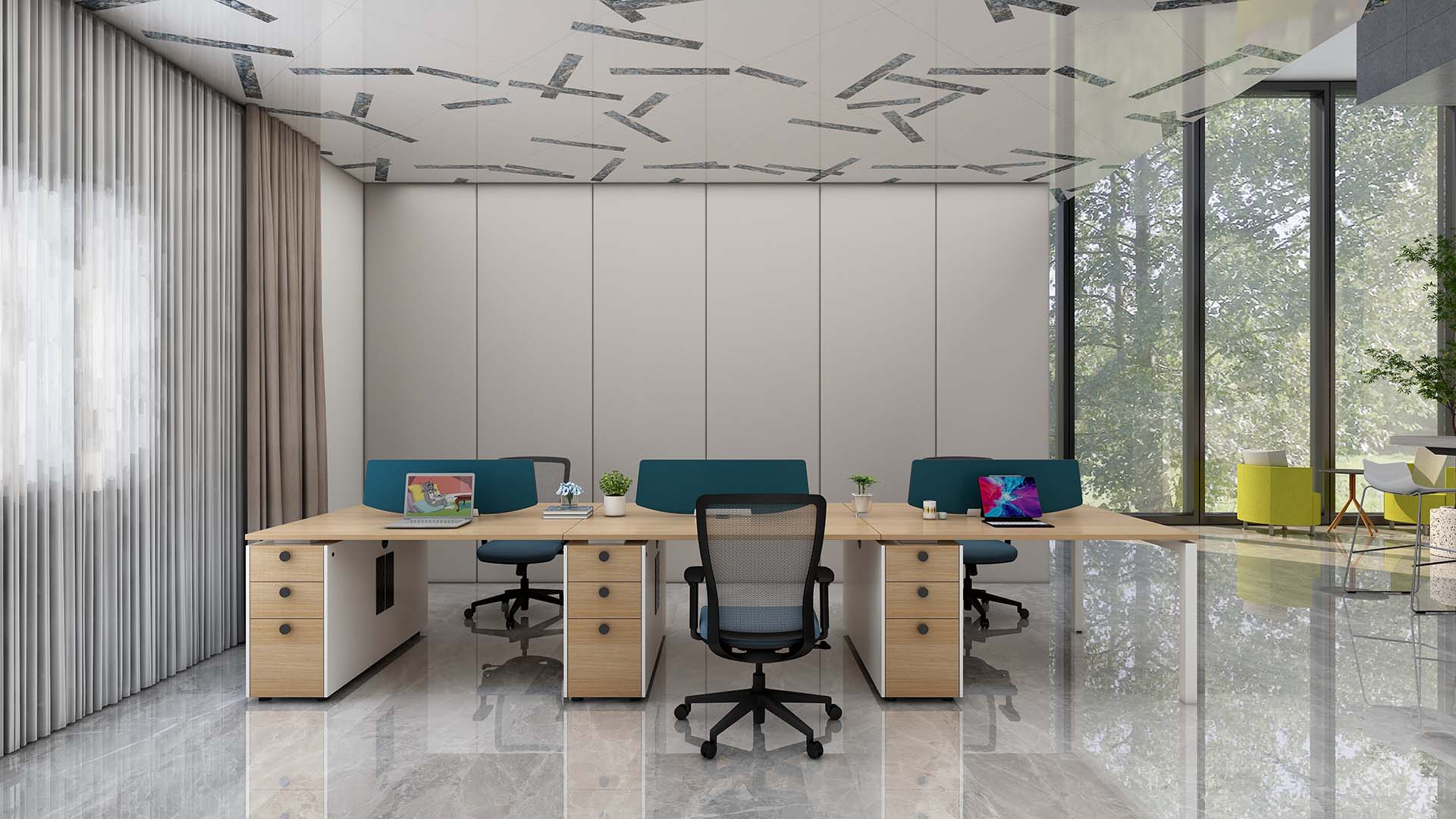 精簡的設(shè)計,逼真的實木色彩,賦予辦公空間自然的屬性,附柜支撐臺面的同時,儲物采用開放與隱藏式收納為主,附柜預(yù)留插座孔,可安裝插座,滿足日常的辦公需求模塊化產(chǎn)品設(shè)計,部件模塊化組合,以黑白兩種經(jīng)典色調(diào)為主色黑白造型臺腳和多種臺面木紋顏色選擇,滿足不同環(huán)境的辦公需求。